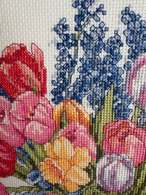 Tulips, Pansies and Max Cross Stitch